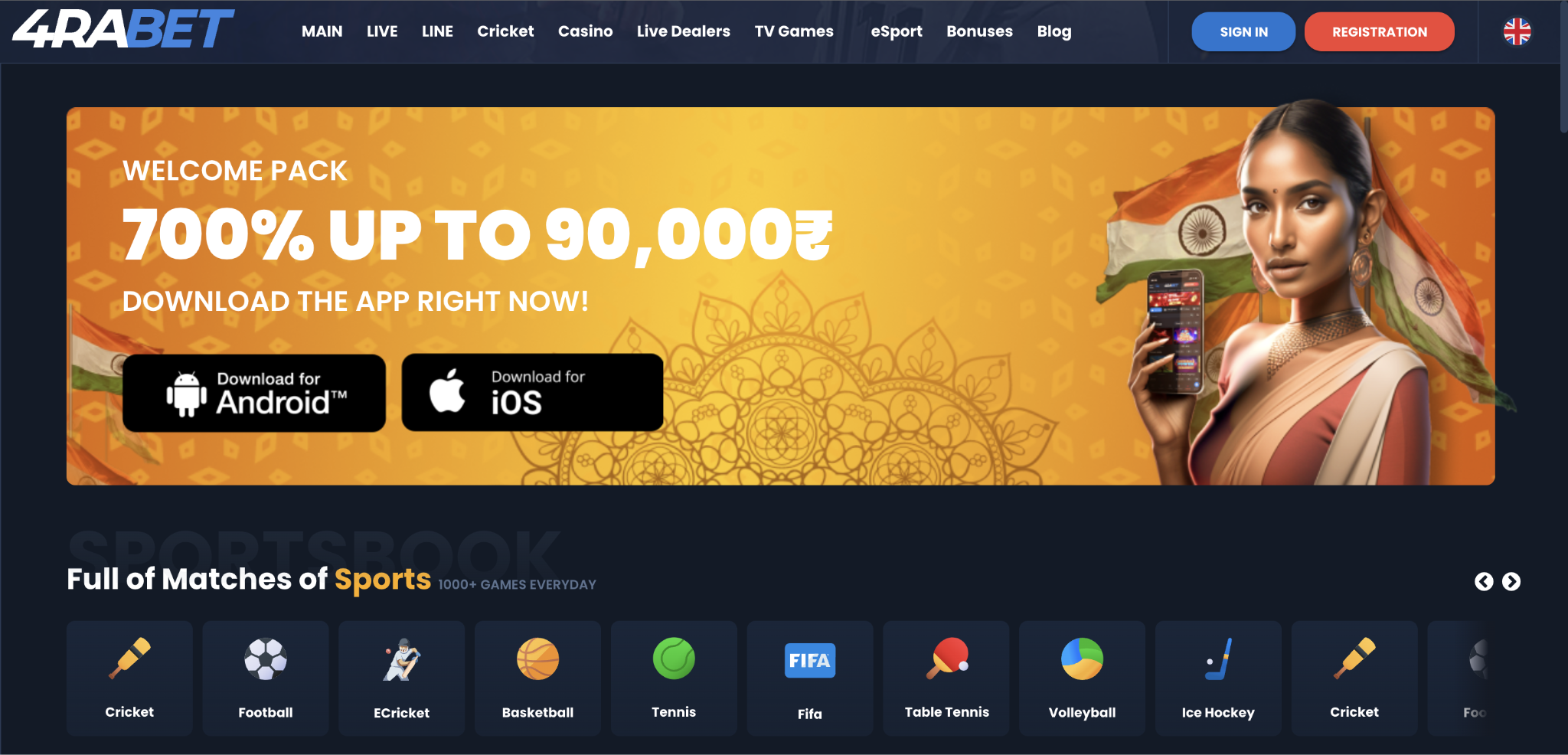 4rabet is one of India’s major online betting firms. It has been in business since 2017 and has swiftly grown to become one of the most popular betting platforms for Indian gamers. The service provides a variety of sports betting choices, including cricket, football, hockey, and tennis, among others.
